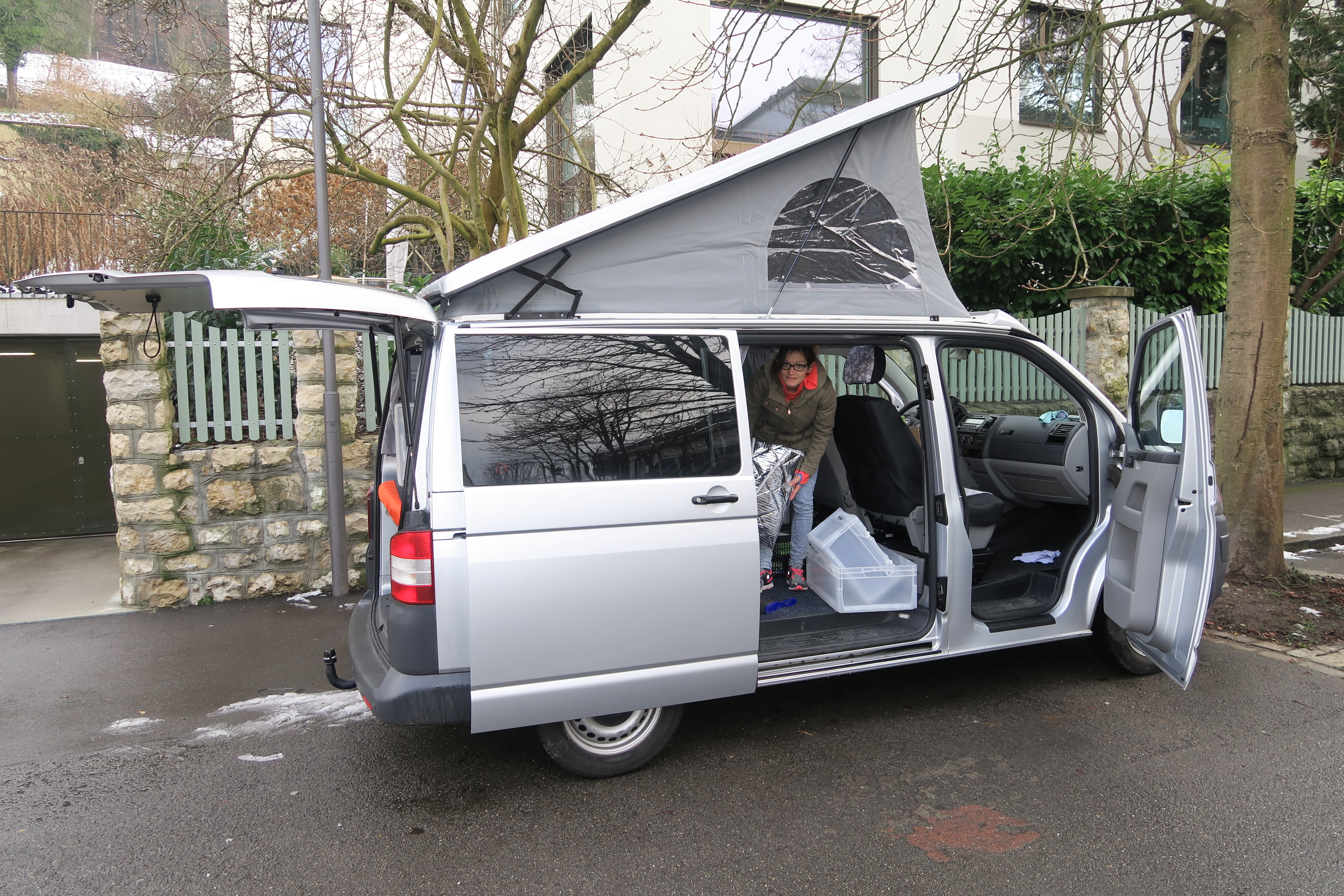 Büsli am Laden, nur Campingausrüstung ist für die Verschiffung erlaubt.