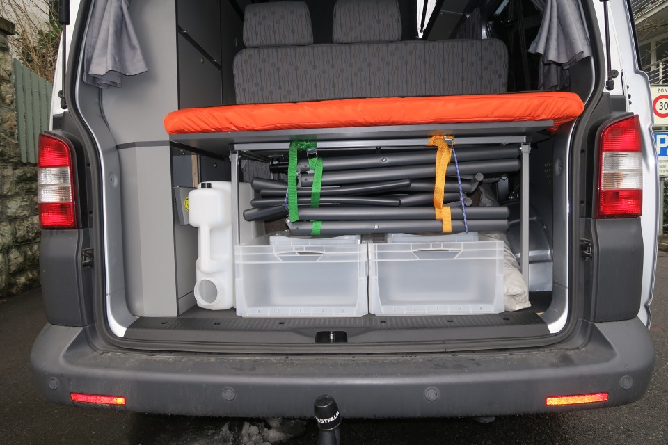 Geschafft Tisch, Stühle und Boxen seefrachtsicher verstaut.