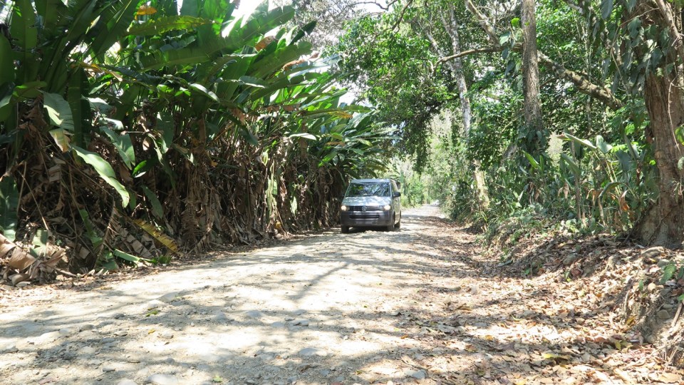 unterwegs neben Bananenbäumen