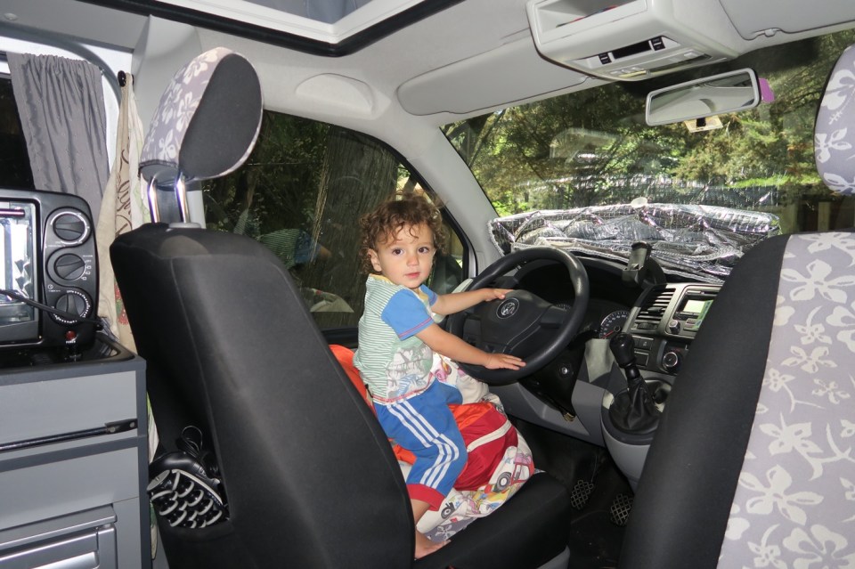 der Mittlere der 3 Knaben der Argentinischen Familie am „Autofahren“