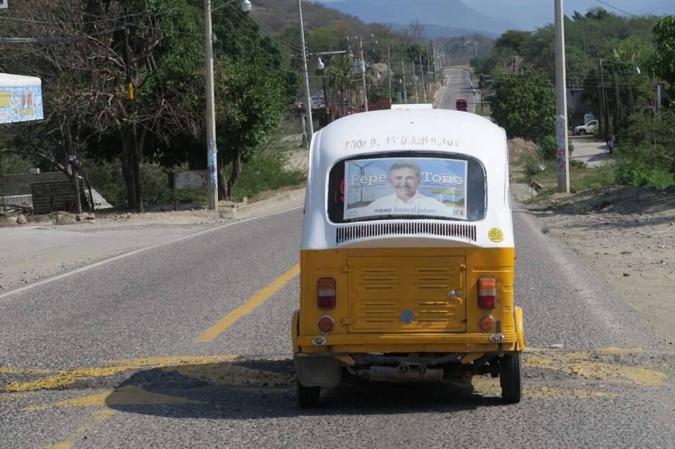 Werbung für die nächste Abstimmung auf dem TukTuk