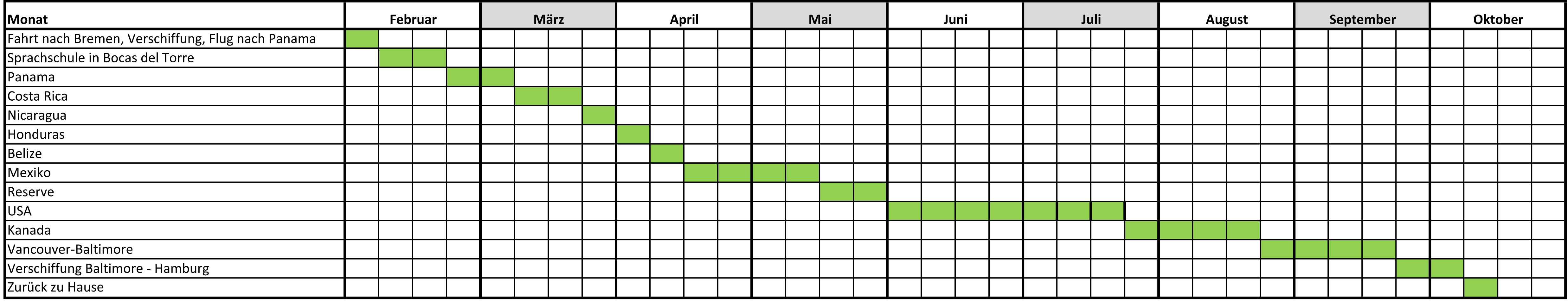 ungefährer Zeitplan